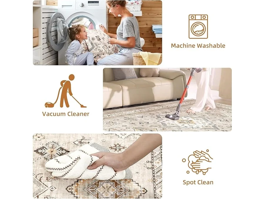 Minieme gebruikssporen, ok, Tospass Beige Wit 120cm Ronde Shaggy Vloerkleed Pluizig Zacht Wasbaar Modern Boho Vloerkleed voor Slaapkamer Kinderkamer Keuken Buiten, B0BRKQYSVS