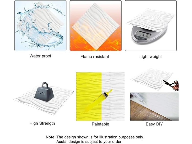 Ongebruikt, volledig, ok, 2 x Art3d 12 Stuks Decoratieve Tegels 3D Muurcomités voor Modern Muurdecoratie, Wandpanelen, PVC Decoratie Muurpanelen, Wall Panels, Wit Wandpaneel, 50 x 50 cm, B01N55MHMC