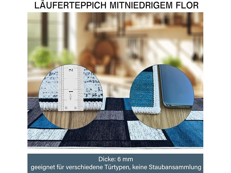 Ongeopend, WTHYGB Tapijtloper voor gang, antislip, 80 x 120 cm, tapijtloper,Blauw , B0D9V9LZXH