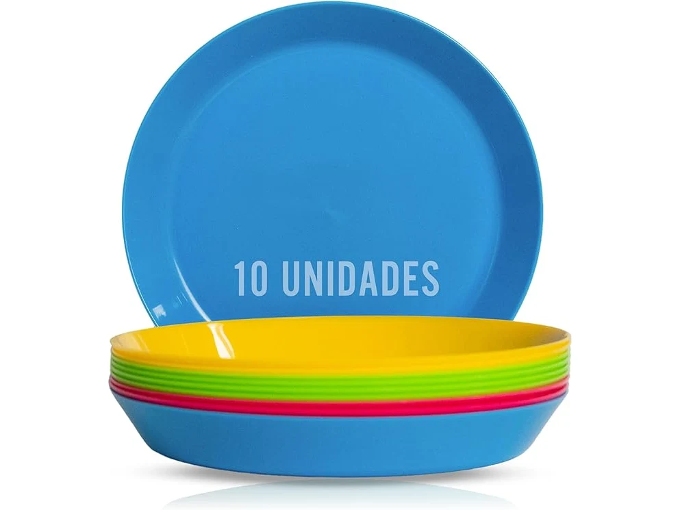 Lichte gebruikssporen, ok, verpakking ontbreekt, Mypicompany harde plastic borden (10 stuks), herbruikbaar campingservies, magnetron- en vaatwasmachinebestendig, campingaccessoires, BPA-vrij, onbreekbaar, campingborden, B0C4LKGB6G