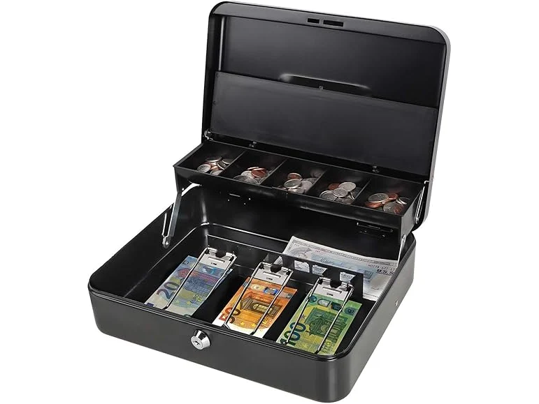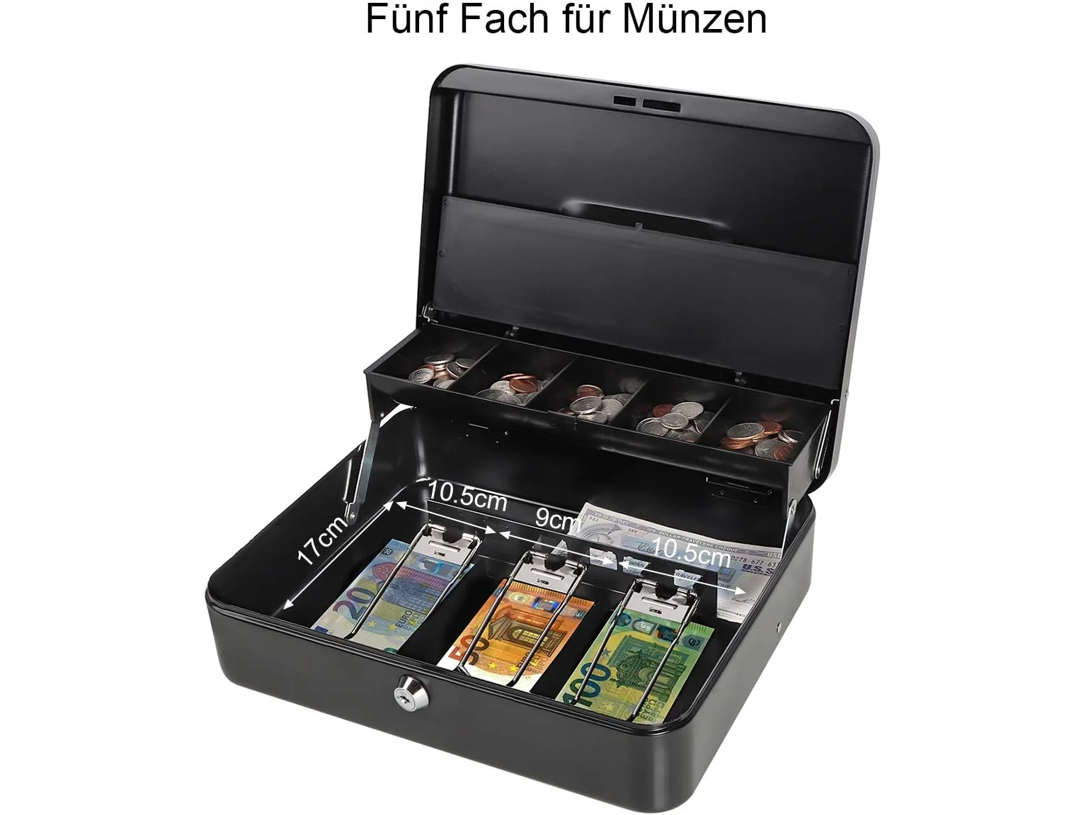 Ongeopend, ok, Parrency Grote geldcassette met geldvak, veiligheidssluiting, vrijdragend muntenvak, 4 bills/5 munten XLarge zwart, B07WRJJ18X