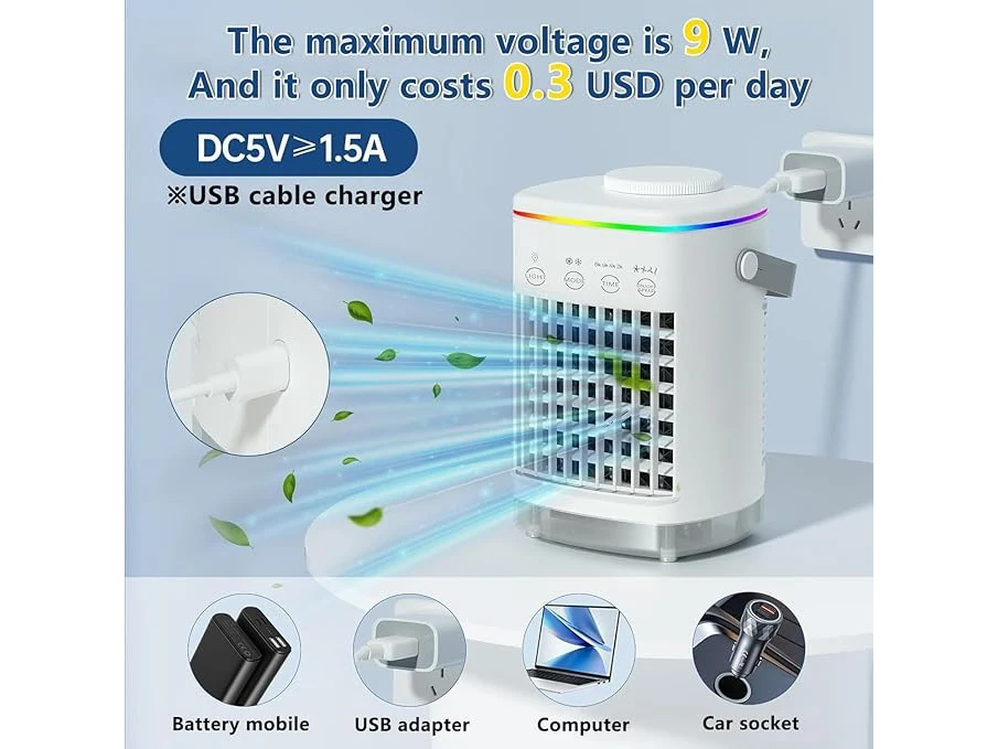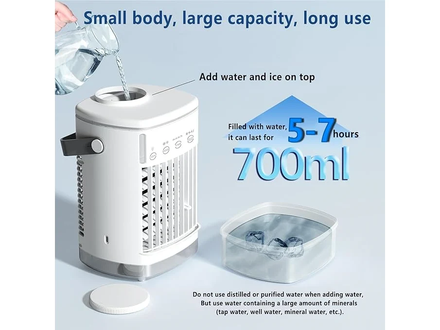 Gebruikssporen, getest en werkend, volledig, ok, Mobiele airconditioning, 3-in-1 draagbare airconditioning, 700 ml, mini-airconditioning met 4 snelheden en 3 mistmodi, 2/4/6/8 uur timer, 7 kleuren, nacht-led, mini-luchtkoeler voor thuis, kantoor [Energieklasse A+++],B0F59CHSSZ