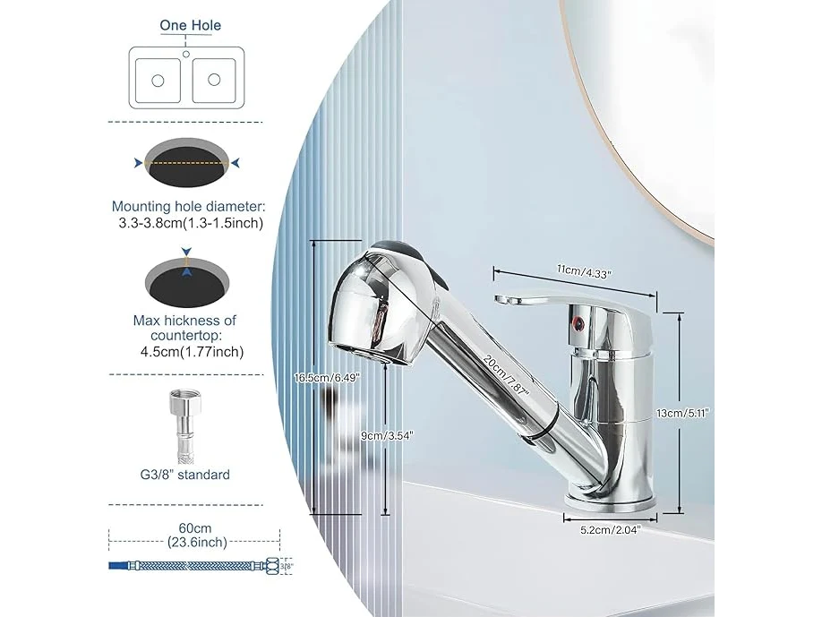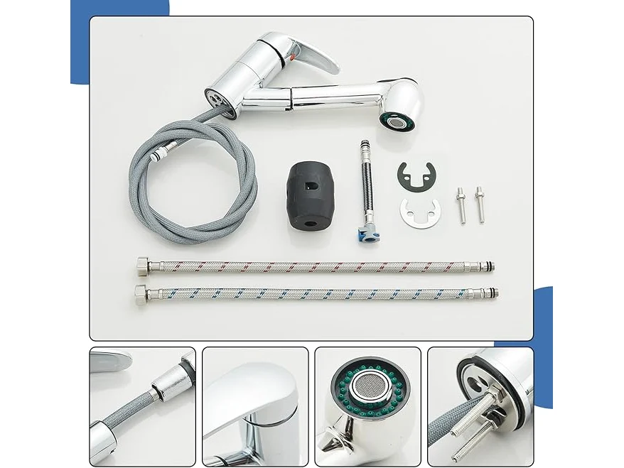 Ongebruikt, volledig,ok, Cesinkin keuken Kraan uittrekbaar chroom hogedruk armatuur keuken 360° draaibare keukenkraan met twee sproeipatronen roestvrij staal spoelbakarmatuur keuken, B0CZDNFJXS