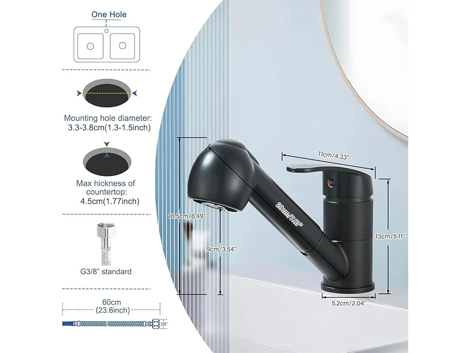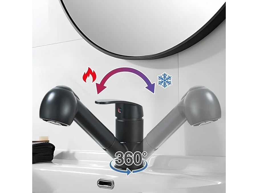 Gebruikssporen, volledig, ok, Cesinkin Kraan keuken uittrekbaar zwart hoge druk armatuur keuken 360° draaibare keukenkraan met twee sproeipatronen roestvrij staal spoelbakarmatuur keuken ,B0CZDCMWS8