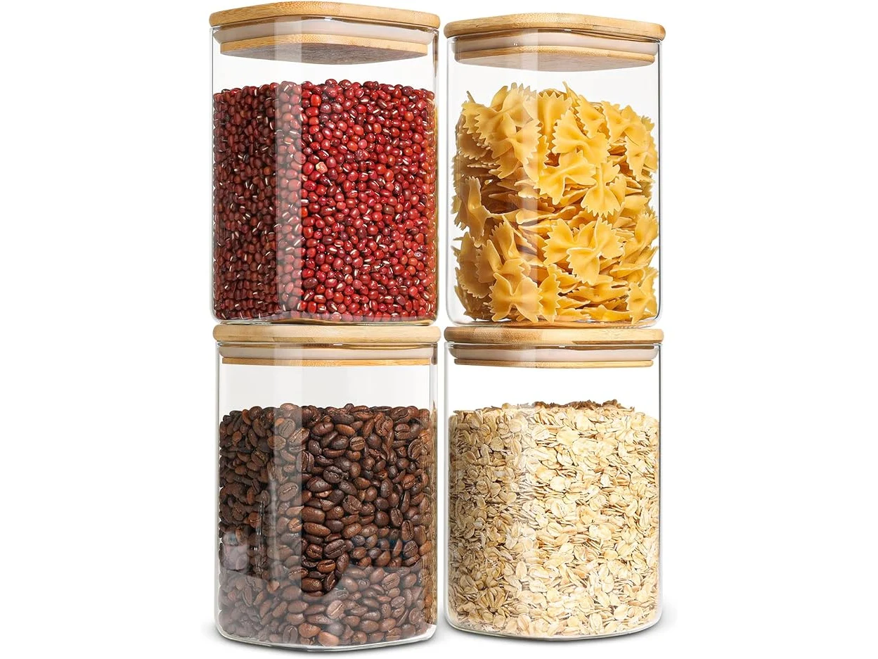 Ongebruikt, ok, ComSaf voorraadpotten met Bambus Deksel, Borosilicaat Glazen Voorraadpotten Set van 4, Opslag Bussen met Silicone Afdichtring, Transparante Keuken Potten voor Voedsel, B09KR7WXJF