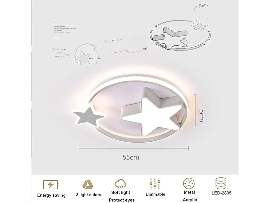 Ongebruikt, getest en werkend, volledig, ok, Witte LED Plafondlamp | Moderne Ronde Kinderlamp | Sterren Sterrenhemel Kinderlamp | Ø55cm 48W | Dimbaar Met Afstandsbediening 2700K-6500K | Kinderkamer Jongens Meisjes Plafondlamp Slaapkamer [Energieklasse A],B0BS6FNZ8L