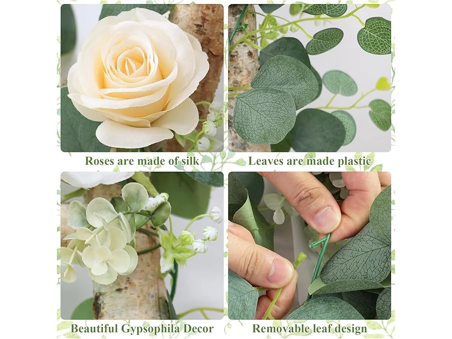 Ongebruikt, ok, originele verpakking ontbreekt, Dremisland kunstbloemenkransen (4 stuks), champagne, eucalyptus, slinger, decoratie, zijden bloemen, rozenslinger, kunstbloemen, slinger, hangplant, bloemenranken voor bruiloft, tafeldecoratie, feest, B0D21YDTXX