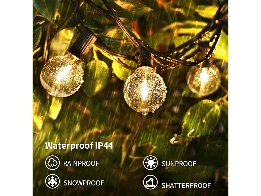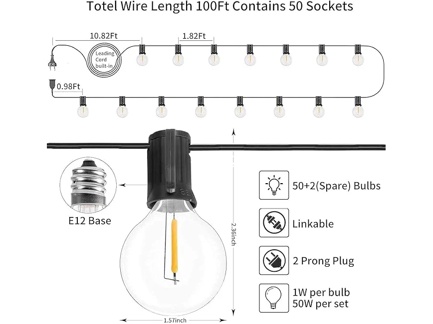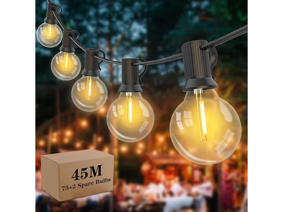 Lichte gebruikssporen, getest en werkend, ok, Yuusei Lichtsnoer voor buiten, 45,7 m, led-lichtketting voor buiten, 75 lampen met 2 reservelampen, warmwit, IP45 waterdicht, G40 lichtketting voor binnen en buiten, voor tuin, balkon, bruiloft, B091F2PG2H