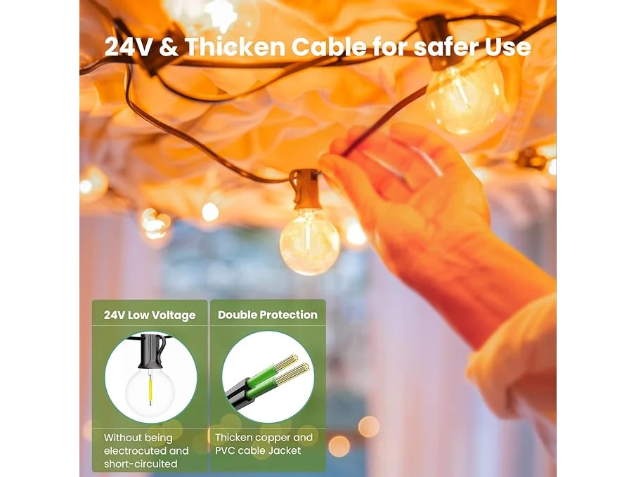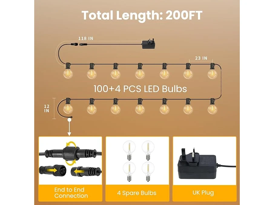 Ongebruikt, getest en werkend, ok, Yuusei 60 m lichtsnoer voor buiten, led-lichtketting voor buiten, met afstandsbediening, 100 + 4 G40, plastic, waterdicht, IP45 gloeilampen, warmwit, voor feest, tuin, terras, bruiloften,B0CNLXV1YQ