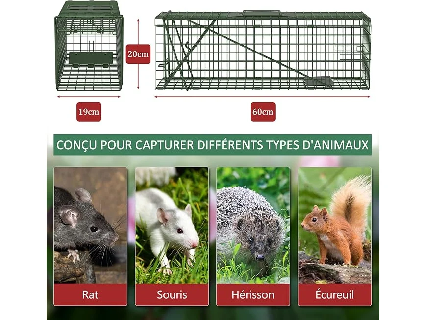 Ongebruikt, ok, Qianruida Rattenvanger Dierenval 61 x 19 x 20 cm Herbruikbare Animal Trap Muizenval voor Muis, Knaagdieren Vangst,Vangkooi, Dierenvanger Vanger, B0D7PS168Y