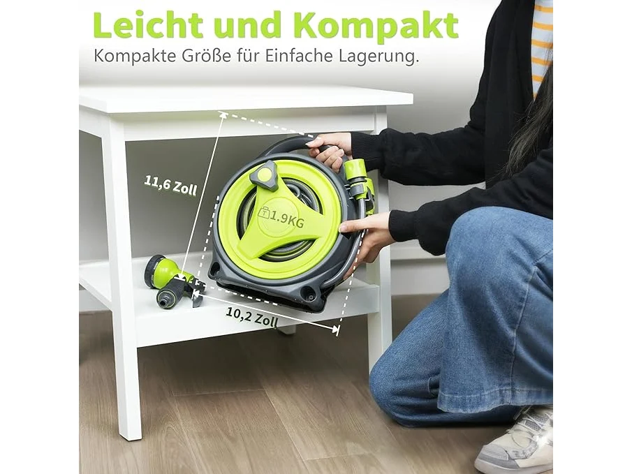 Ongebruikt, ok, Diivoo Tuinslanghaspel, Compacte en Draagbare Slanghaspel, 10 m met Multifunctionele Sproeikop, Moeiteloos Oprollen, Mini Slanghaspelset voor Tuin en Terras, Balkons, Camping, B0CP7T4WDS