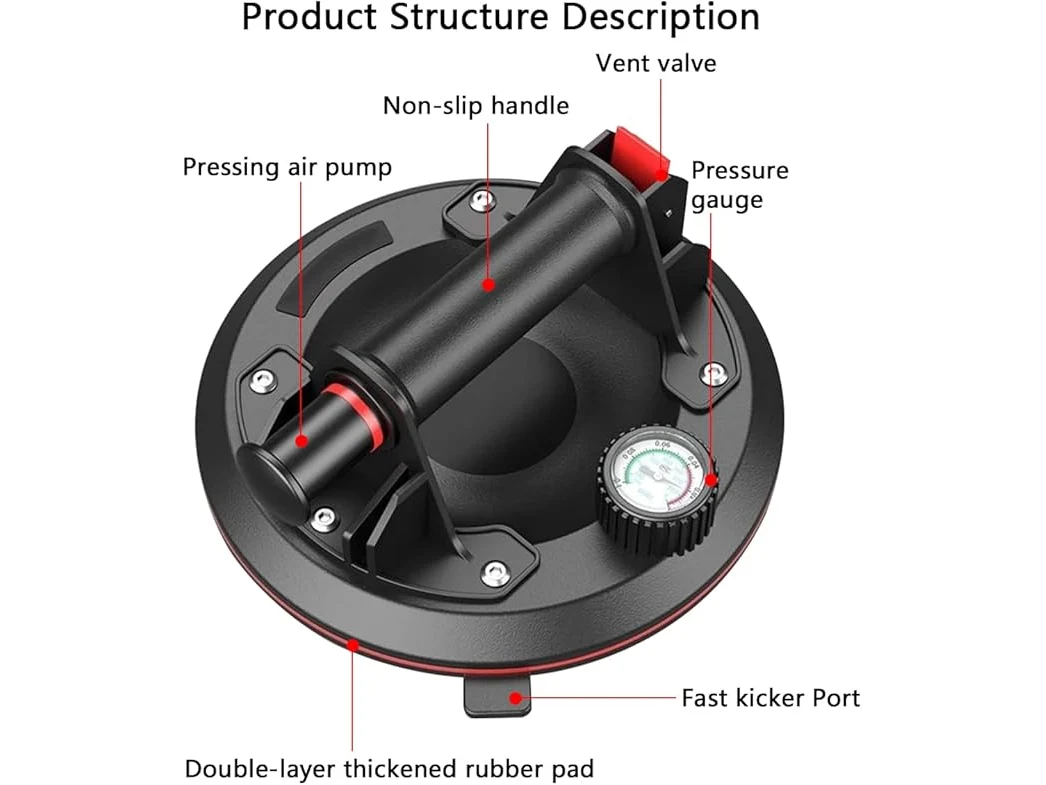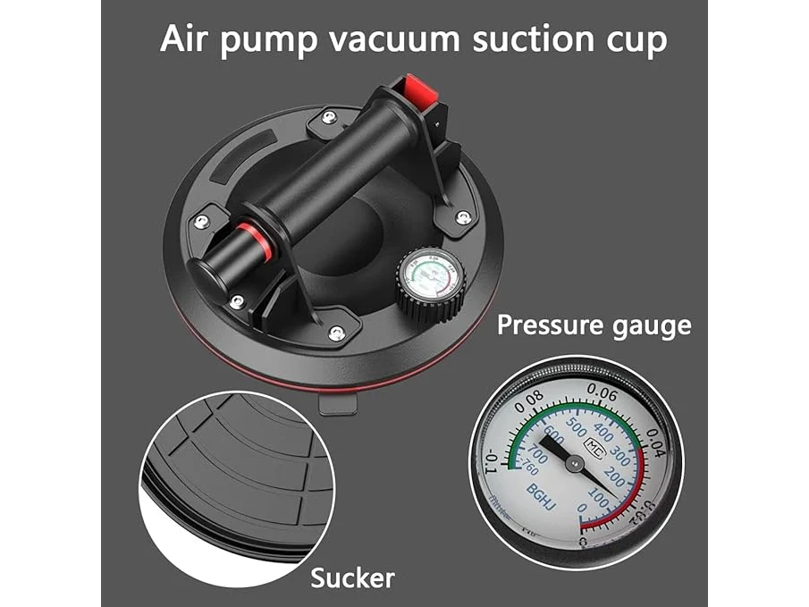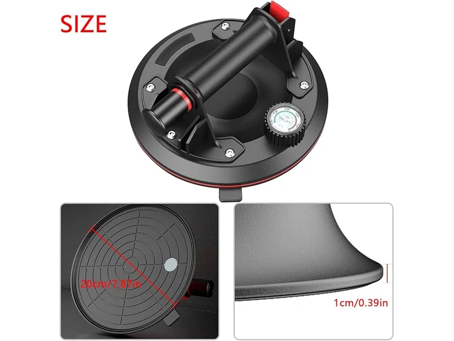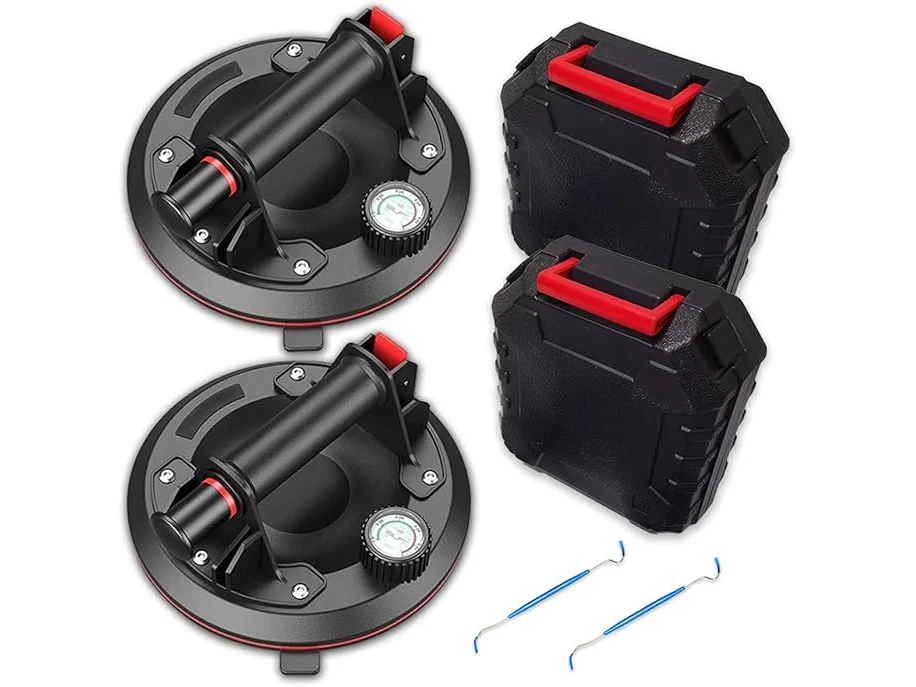 Ongebruikt, volledig, ok, Mocoli zuiglifters (2 stuks) 8 inch glazen zuignap vacuümheffer met manometer draagvermogen 200 kg ABS handpomp glazen zuiger krachtige zuigplaat met draagbare gereedschapskist, B0BR9CK8L3