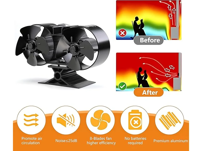 Ongebruikt, ok, Stove Fan - Double Motor - 8 Blades Stove Fan Specially Designed for Large Space for Fireplace, Wood/Logs (Small Size) B07KM28NZY
