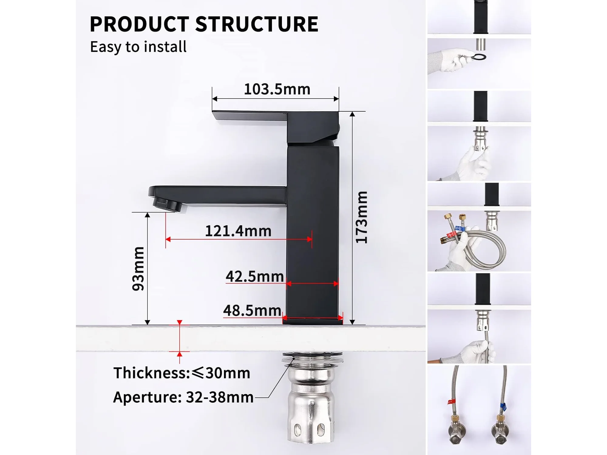 Ongebruikt, volledig, ok, originele verpakking ontbreekt, HOMELODY Waterkraan badkamer zwart wastafelarmatuur wastafel rechthoekig badkamer mengkraan wastafel roestvrij staal eengreepsmengkraan badkraan, B0BZYKKHG5