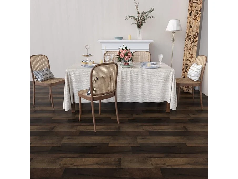 Ongeopend, ok, 2 x 4 Homease PVC-vloerbedekking, zelfklevende houtlook, vinylvloer, vintage look, waterdicht, op maat te snijden, voor slaapkamer, keuken, woonkamer, 60 x 1000 cm, donkere retrostijl