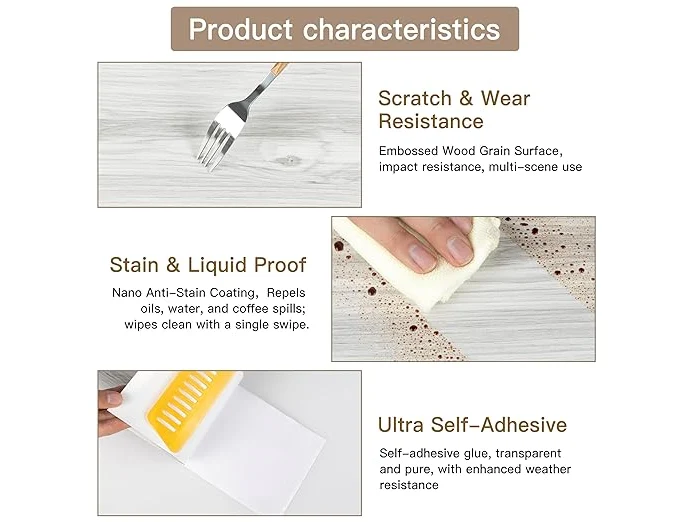 5 x zelfklevende pvc-vloerbedekking (18 stuks, 15 x 90 cm)
