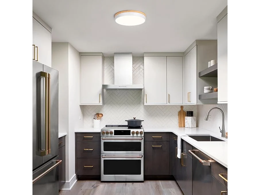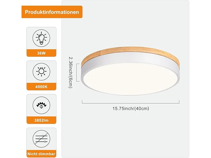 Ongebruikt, getest en werkend, volledig, ok, Qamra LED plafondlamp, witte houten plafondlampen, 40 cm moderne ronde plafondlampen, 36 W plafondlamp voor woonkamer, slaapkamer, keuken, gang, eetkamer 4000K ,B0FHP4ZHHD