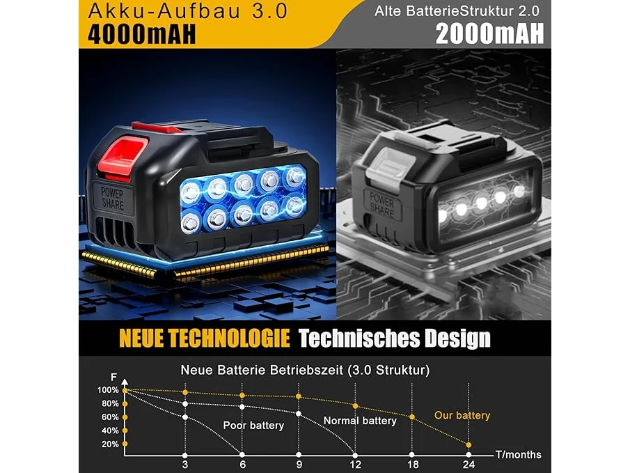 Ongebruikt, getest en werkend, ok, Xbzzgmg Accu-grastrimmer met accu, 2 x 4000 mAh accu, bosmaaier, accu, 3-in-1 grastrimmer, Bring telescoopstang en extra handgreep, bosmaaier, grastrimmer voor het snijden van gazons,B0DPF9DGP3