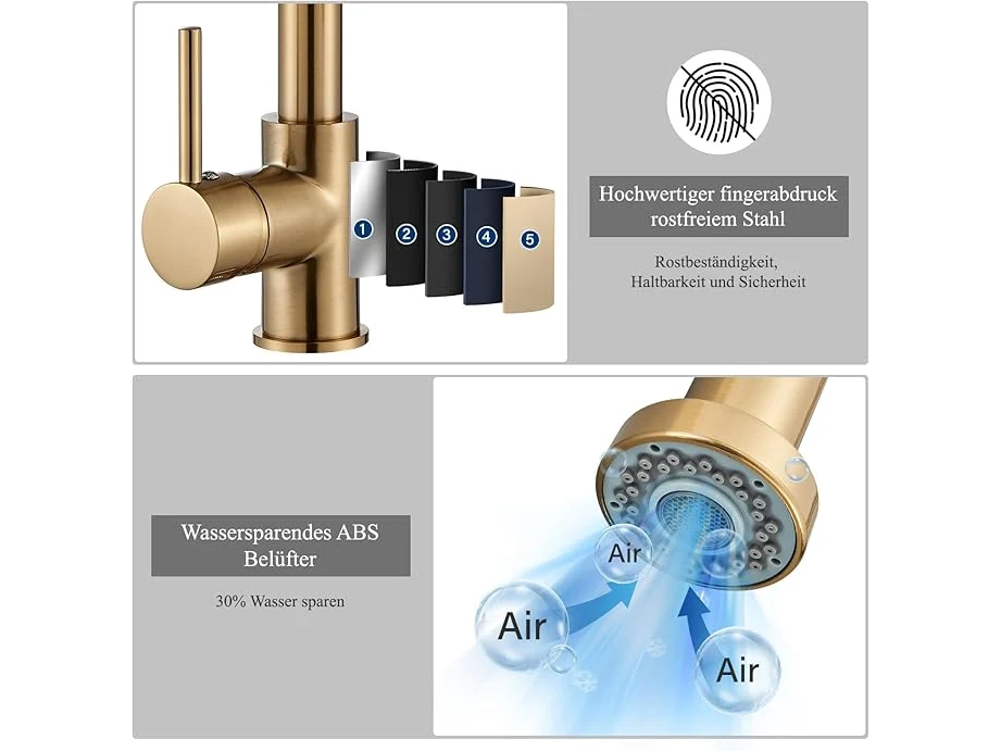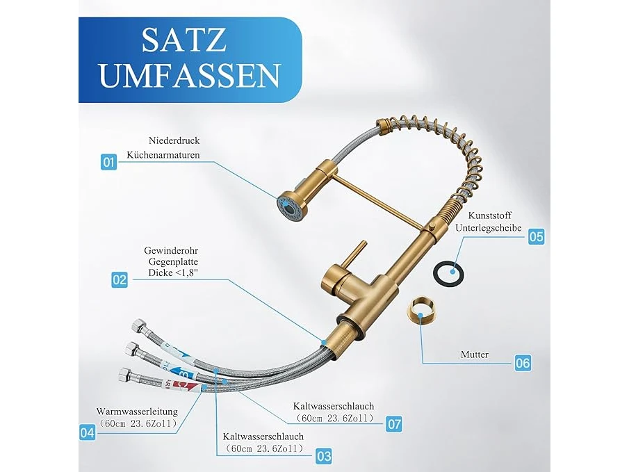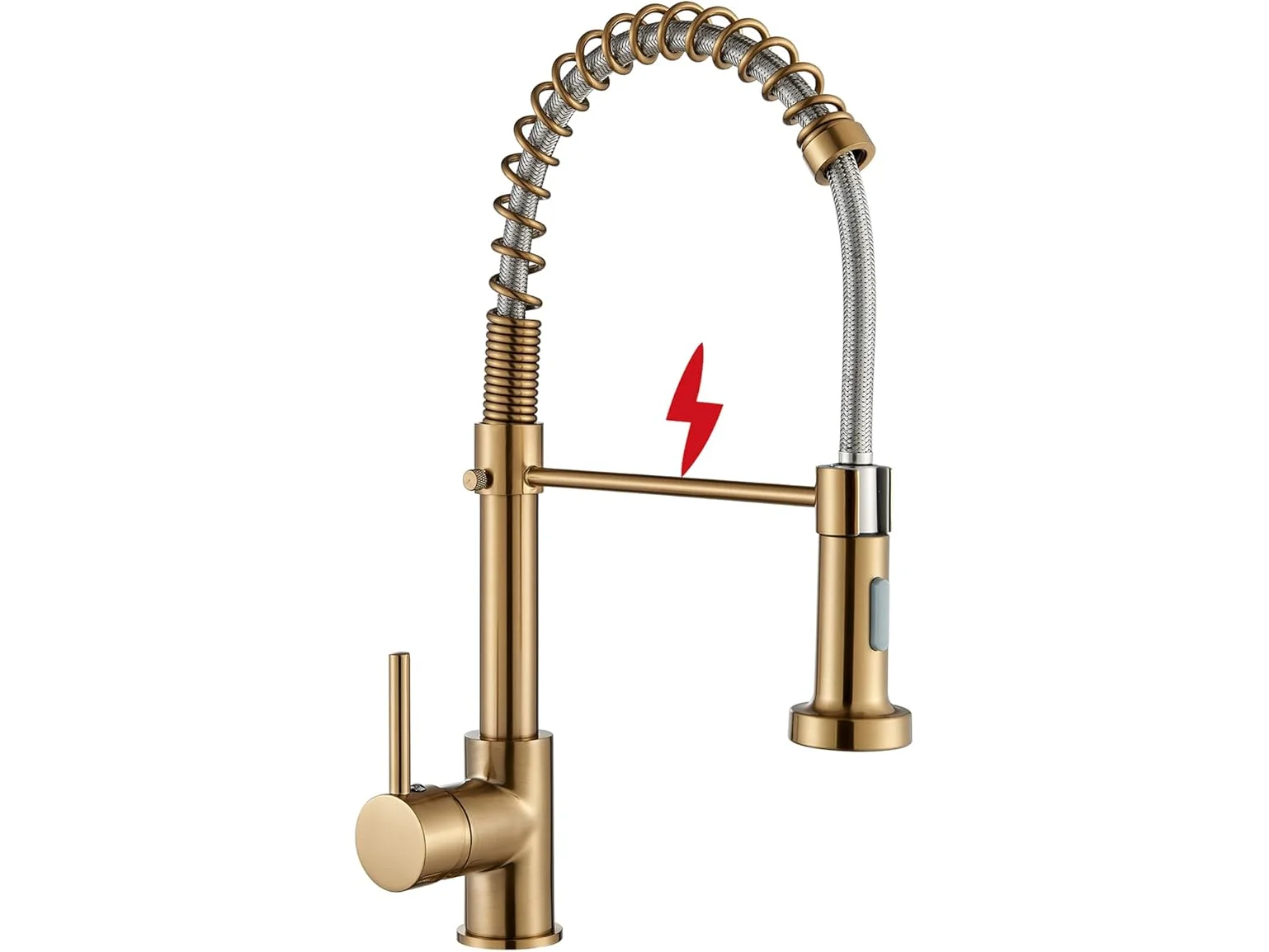 Ongebruikt, ok, Geborsteld goudkleurige lagedruk keukenkraan - Keukenkraan - Keukenkraan - 360° draaibaar - Twee sproeifuncties - Geschikt voor doorstroomwaterverwarmers,B0CCSCY2XX
