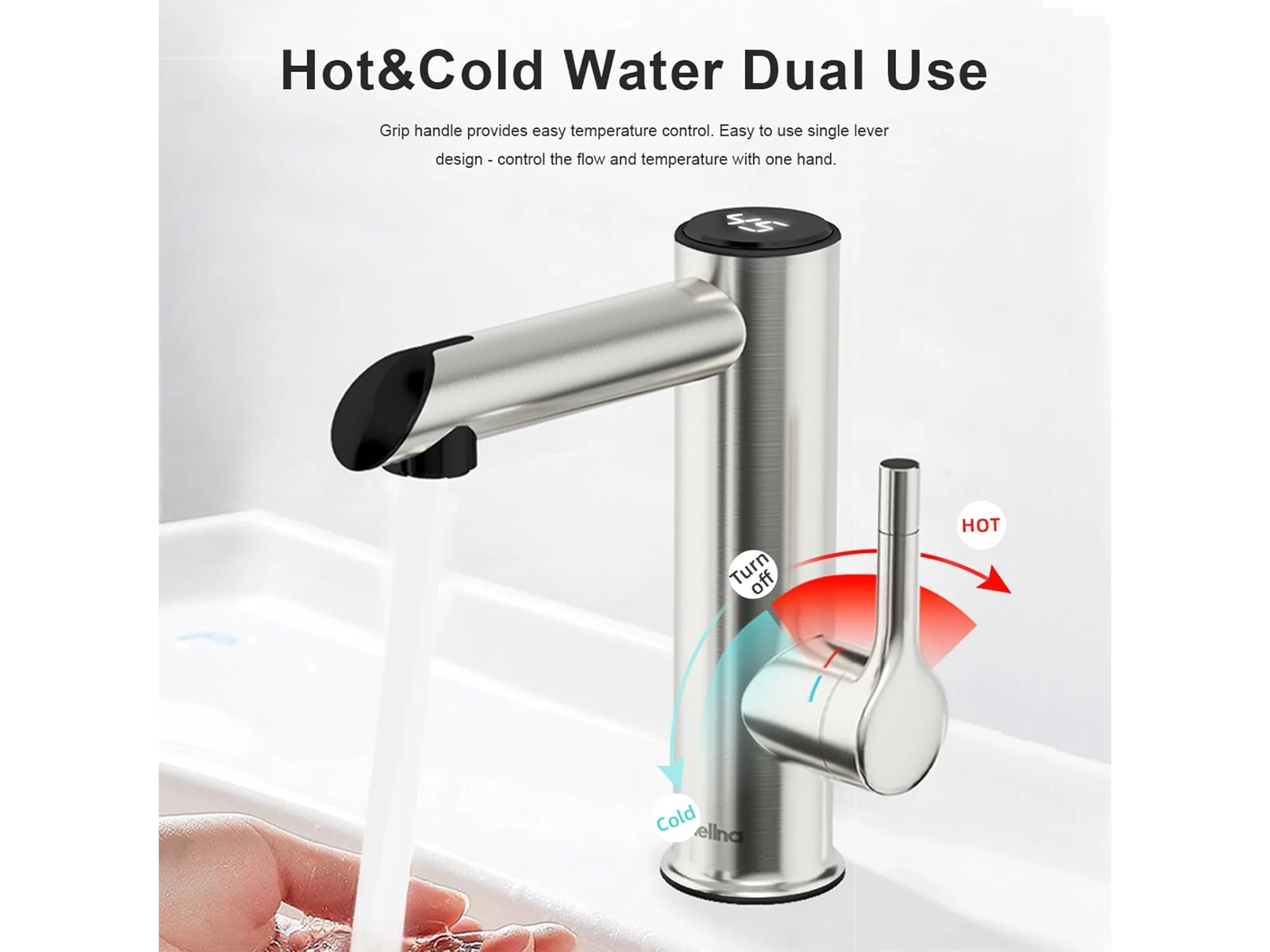 Ongebruikt, ok,Elektrische kraan van roestvrij staal, 220V kokendwaterkraan, kraan voor direct warm water in de badkamer, elektrische kraan met digitaal display, tankloze boiler (zilver) [Energieklasse A],B0C7TGSQV8