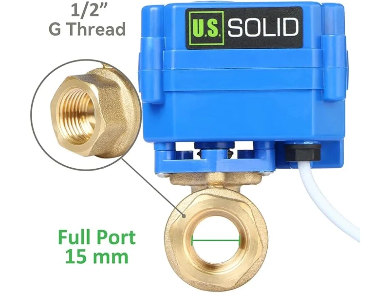 Minieme gebruikssporen, niet getest, ok, U.S. Solid 1/2" gemotoriseerde kogelkraan messing elektrische kogelkraan DN15 met volledige poort, 9-24V AC/DC, 2 draad Auto Return Setup,B07CWMNF7B