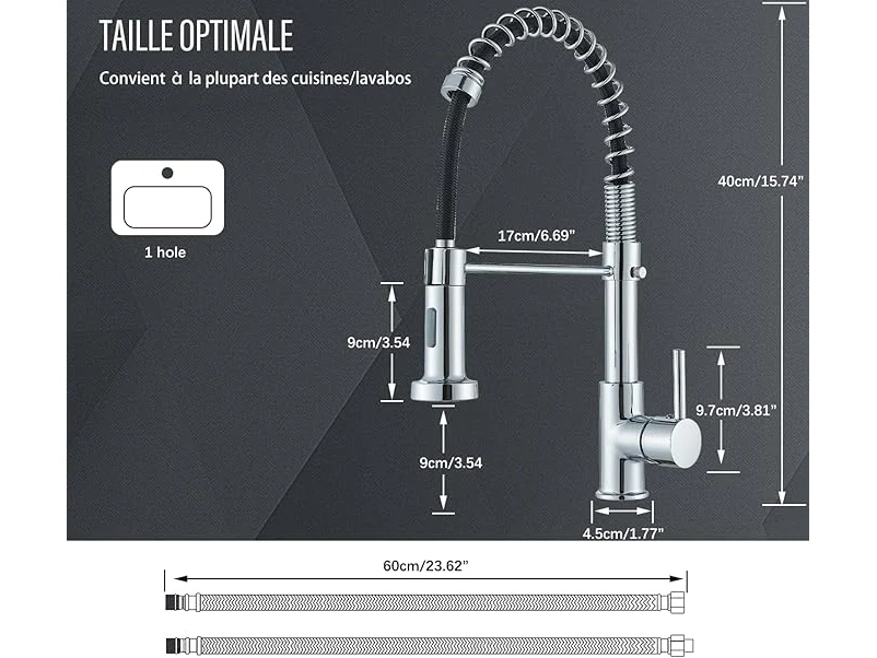 Gebruikssporen, volledig, originele verpakking ontbreekt, ok, Cesinkin 360° draaibare keukenkraan, hoge booggootsteenkraan, neerklapbare sproeier, 2 spuitmodi in messing (verchroomd), B0B1M6LWTW