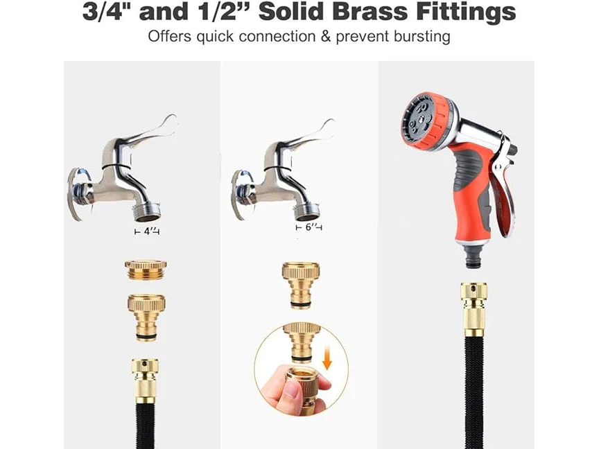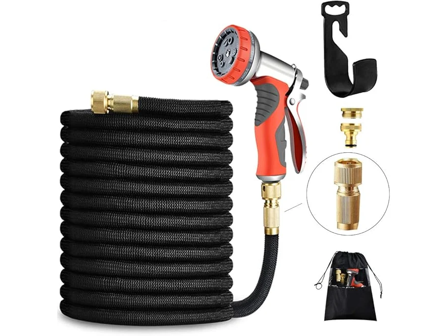 Minieme gebruikssporen, volledig, originele verpakking ontbreekt, ok, LUFENG UPGRADED Uitbreidbare slang 150FT 45M Tuinslang met Dubbele Latex Kern Slang Pijp Massief Messing Fittings 9 Functies Metalen Spuitpistool Mondstuk Wandhanger voor Tuinieren Auto Wassen,B07N38CP8C
