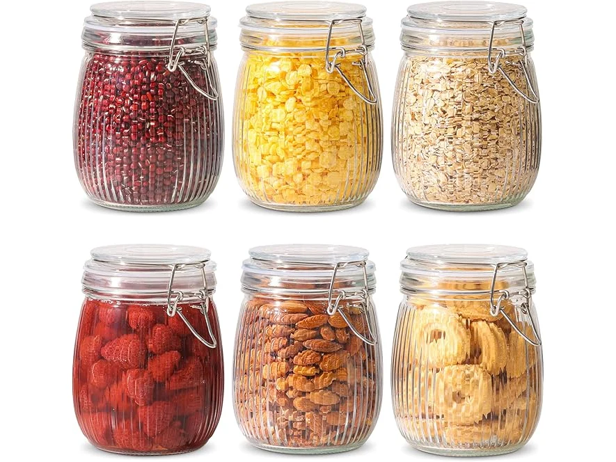 Ongebruikt, volledig, ok, ComSaf Luchtdichte glazen pot met deksel 25 oz Set van 6, Glazen opbergcontainers met deksels, glazen bus, gestreepte clip bevestigingspot voor keuken inblikken, ontbijtgranen, koffie, pasta, snacks,B0CQT2G8LN