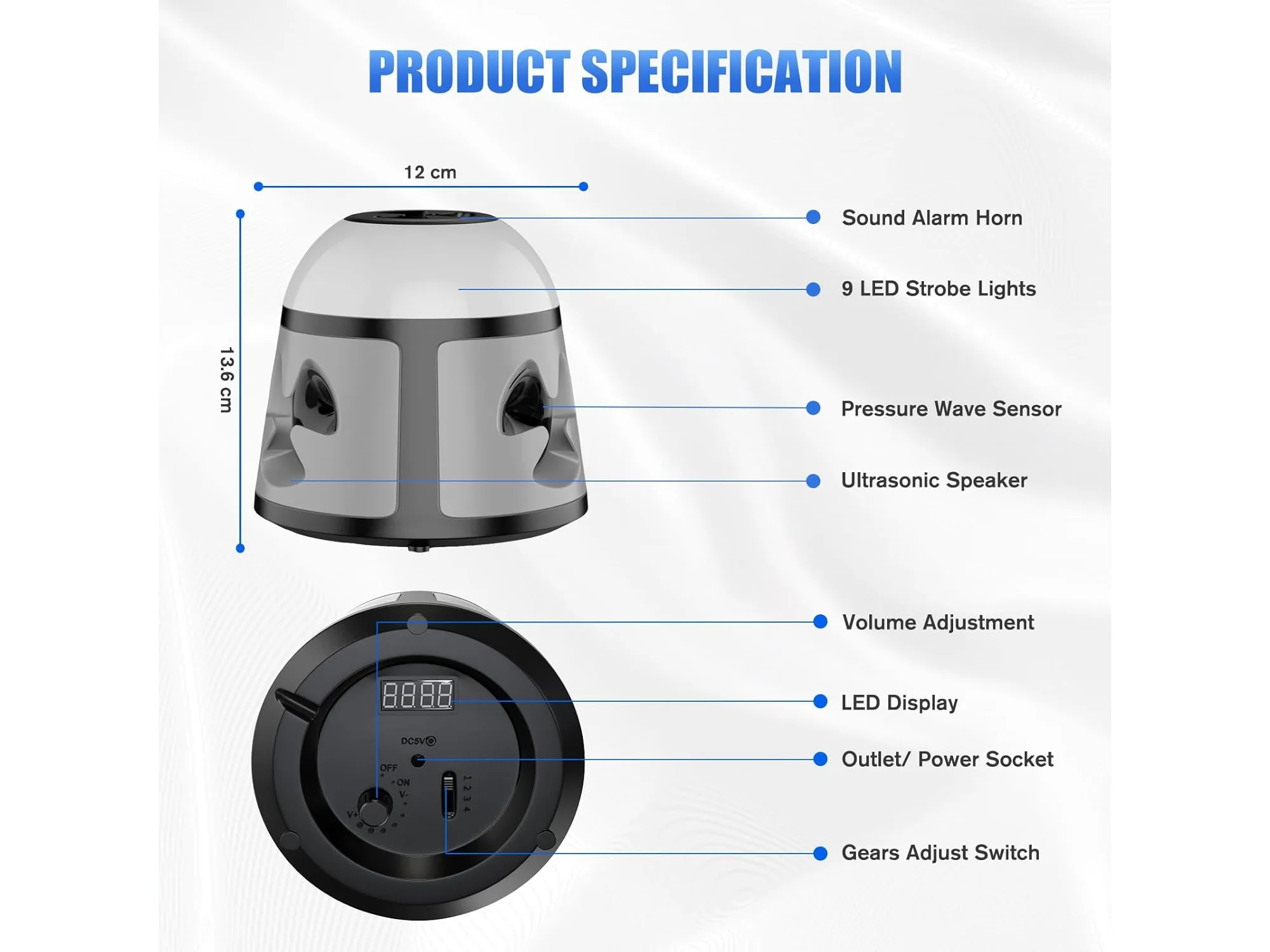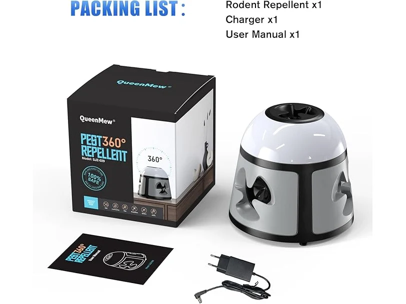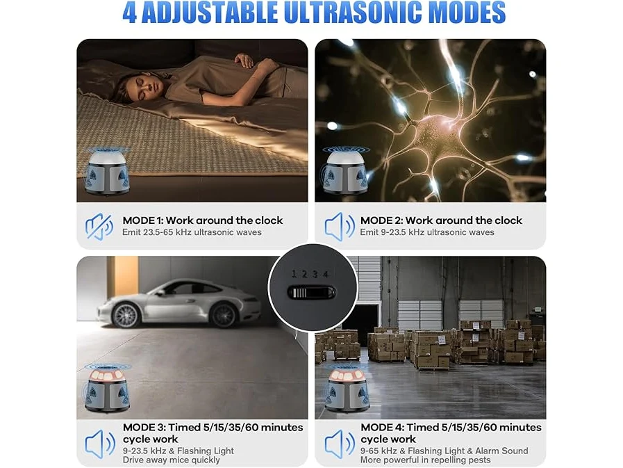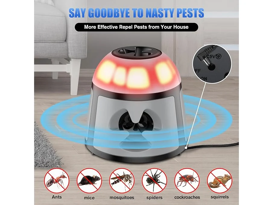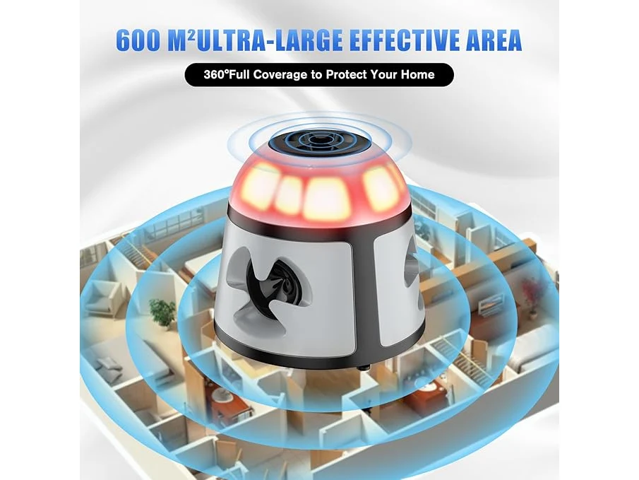 Ongebruikt, getest en werkend, volledig, ok, Bubbacare Muizenafweer, 360° muizenafweer met knipperlicht, 4 modi, 600 m², groot ultrasoon spectrum voor muizen, buiten voor knaagdieren, ratten, mieren, spinnen, kakkerlakken, B0DFHFMSXM