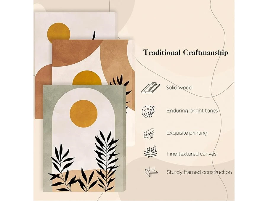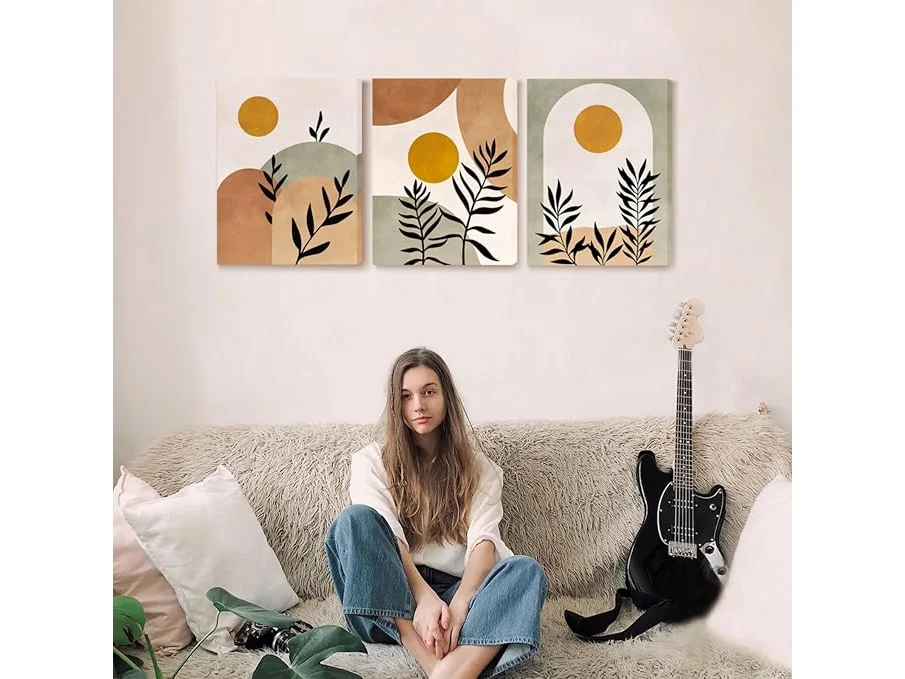 Ongebruikt, ok, Hyidecorart Canvas Schilderij Set Woonkamer, Boho Schilderijen Zonnebladeren Abstracte Geometrie, Nordic Minimalistisch Modern Prints Wall Decoration Slaapkamer Kantoor Keuken Badkamer,B0D4TZ3FZB