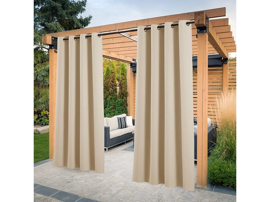 Ongebruikt, schade aan 1 ring waar stof wat los zit, ok, PONY DANCE Gordijnen voor buiten, ondoorzichtig, met ogen, isolerend, voor pergola, terras, tuin, 132 x 274 cm, geel/beige, 2 stuks,B0CNT4BDB8