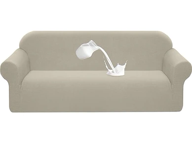 Minieme gebruikssporen, ok, Granbest Stretch waterdichte bankhoes, 1-delige bankhoes, elastaan, jacquard, elastische bankhoes met antislipschuim (4-zits, zand),B0DF4WJD7H