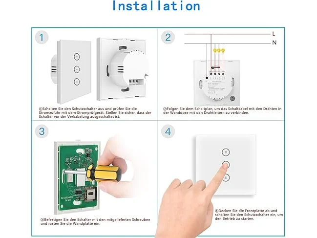 Ongeopend, ok, 3 x UseeLink Slimme lichtschakelaar, Alexa UseeLink 3-weg wifi, intelligent glazen touchscreen-schakelaar, werkt met Amazon Alexa en Google Home, 3 versnellingen, 2 stuks, B0CWYYCHH9