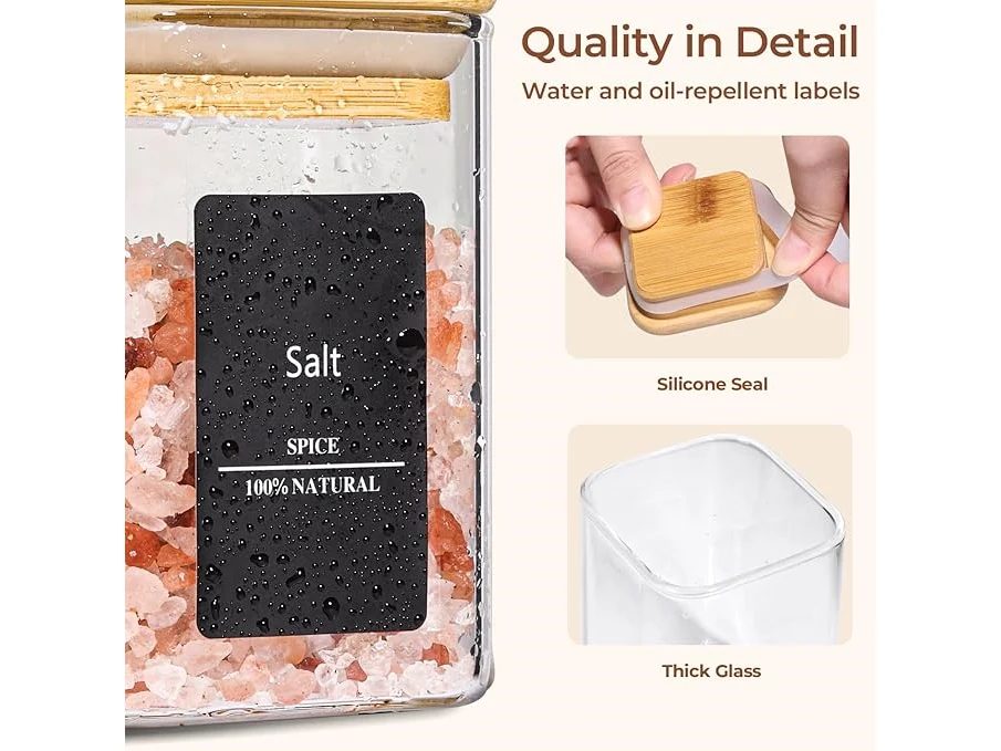 Ongebruikt, compleet, ok, ComSaf 16 stuks glazen kruidenpotjes met bamboe deksels, 120 ml vierkante glazen voorraadpotten met 275 zwarte etiketten, luchtdichte kruidenpotjes met deksels, glazen container voor specerijen, zout, B0BKZ57QC5