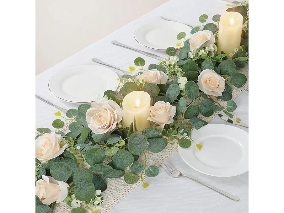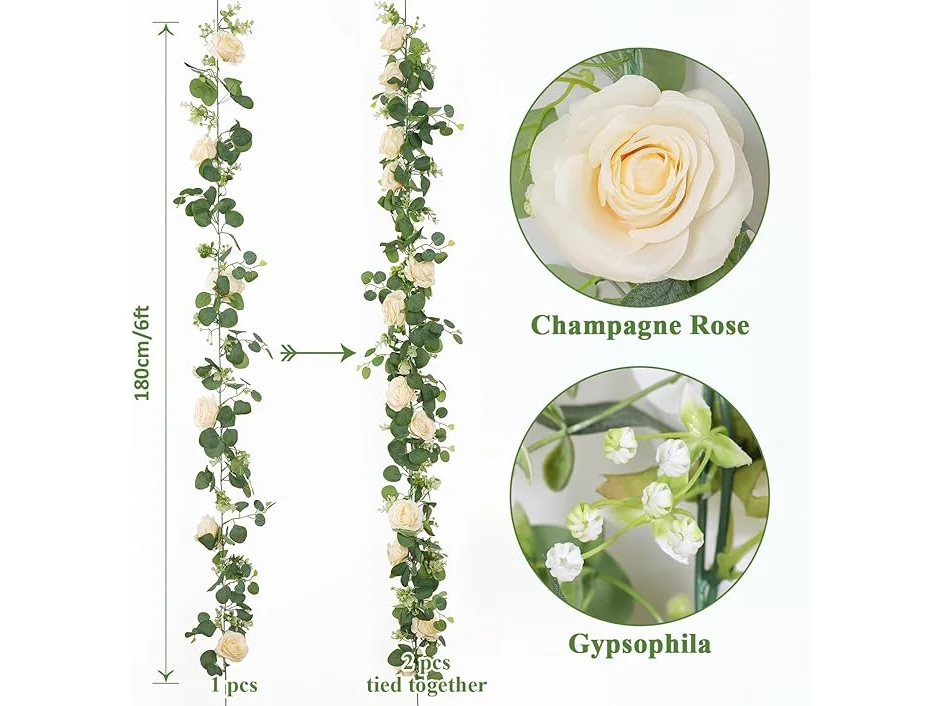 Ongebruikt, volledig, ok, Dremisland 4 stuks kunstbloemenkranken, champagne, eucalyptus, slinger, decoratie, zijden bloemen, rozenslinger, kunstbloemen, slinger, hangplant, bloemenranken voor bruiloft, tafeldecoratie, feest,B0D21YDTXX