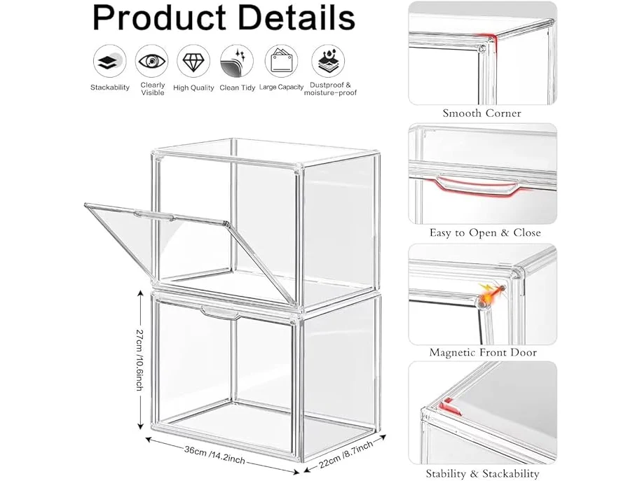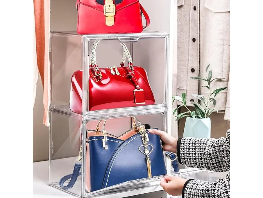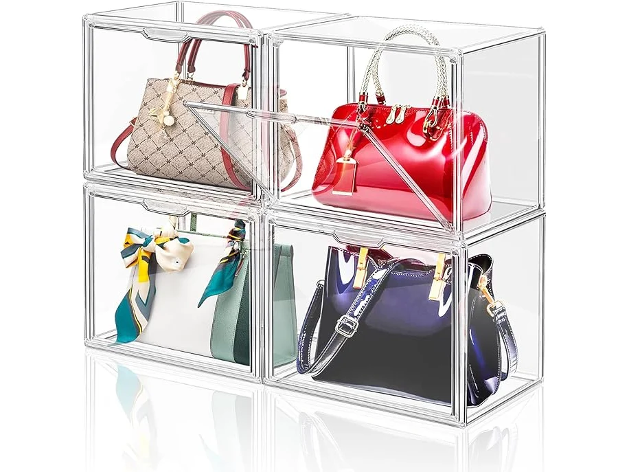 Ongebruikt, ok, LINYAPRY 4 stuks doorzichtige plastic opbergorganizer voor kast, acryl vitrinekast voor portemonnee en handtas, stapelbare opbergdozen tas organizer met magnetische deur voor clutch, B0BM48MDXN