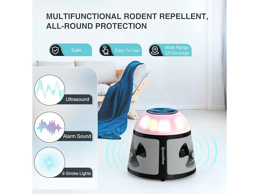 Ongebruikt, getest en werkend, ok, Ultrasone muis en muizen, 360° ultrasoon apparaat met ledlicht, plug ter verdediging van muizen, knaagdieren, voor binnenbescherming en ongediertebestrijding, tuin,B0CYXV2CSB