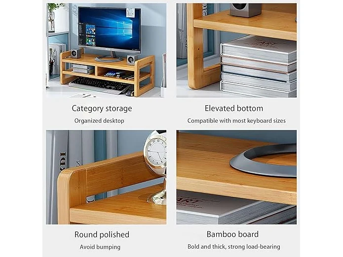 Ongeopend, ok, Catekro Monitor Stand Riser, 2 lagen Hout Monitor Riser Stand, Multifunctionele Desktop Organizer Riser voor Computer, Laptop, Printer (Lichtbruin), B0CF938DM8