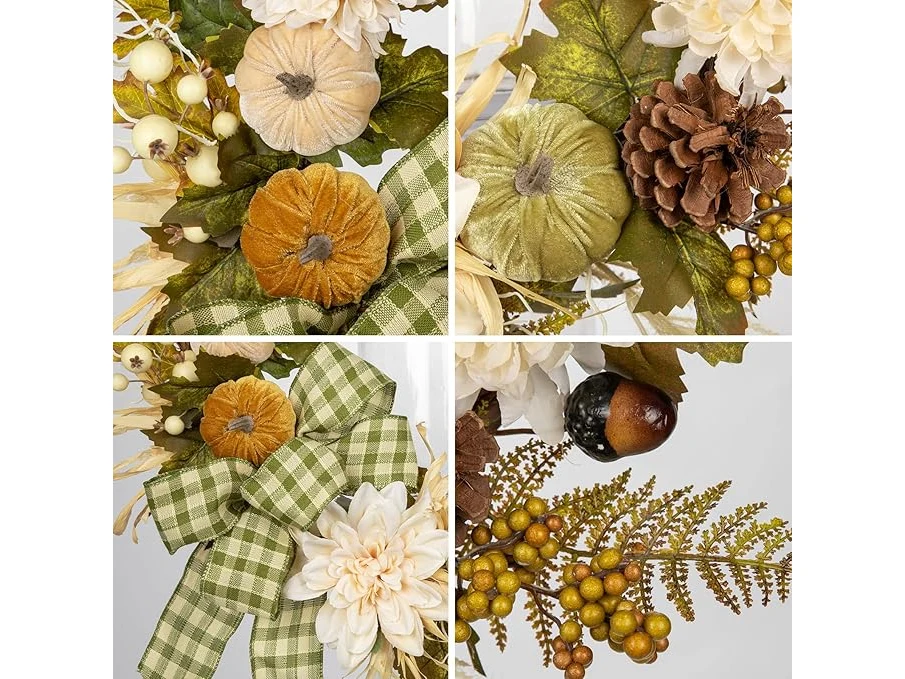 Ongeopend, in seal, Herfstdeurkrans (61 cm) kunstmatige pompoenkrans herfstkrans met fluwelen pompoen, dahlia en strik, herfstkrans voor Halloween, Thanksgiving-krans-ideeën voor je huisdeur, binnen- en buitendecoratie, B0CRB7NZT4