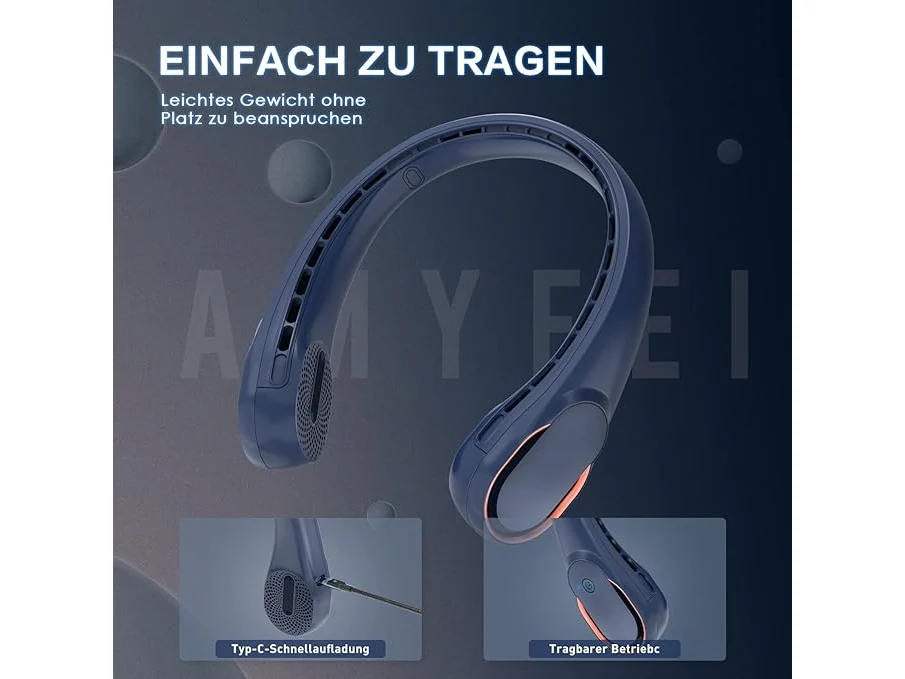 Ongebruikt, getest en werkend, ok, AmyFei draagbare ventilator, stille mini USB-halsventilator zonder bladeren, 3 snelheden, 5200 mAh halsventilator, geschikt voor buitensporten, thuis, op kantoor, op de camping, op reis, B0BYS8J2V4