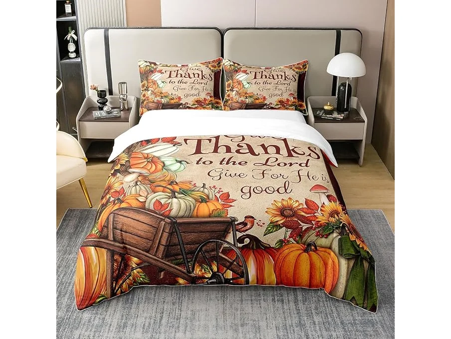 Ongeopend, in seal, Homewish 100% katoen, Thanksgiving beddengoedset, herfst, pompoen, zonnebloemen, dekbedovertrek, 155 x 220, herfstoogst, troosterafdekking voor boer, gelukkig Thanksgiving bedset, B0CGR4L8XB
