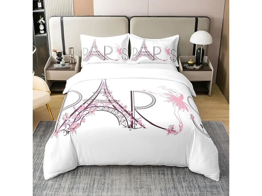 Ongeopend, in seal, Homewish 100% Katoen, Dekbedovertrek 240x260 Eiffeltoren, Ballerina Beddengoed Set voor Klassieke Dansliefhebbers, Parijs Beddengoed Set voor Meisjes Vrouwen, Bloemenmotief Roze Hart, B0CTQBHZV7