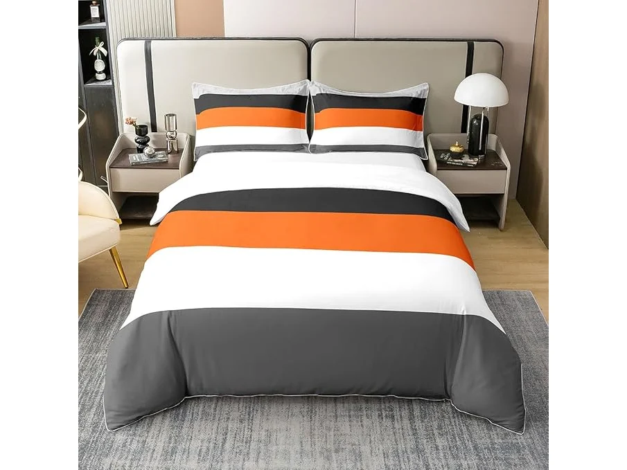 Ongeopend, in seal, Homewish 100% Katoen, dekbedovertrek 240 x 260 Oranje Grijs Zwart, Geometrische Streep Patchwork Beddengoed, Lichtgrijs Wit Gestreept Dekbedovertrek voor Kinderen Volwassenen, Modern, B0CRKTVFX6