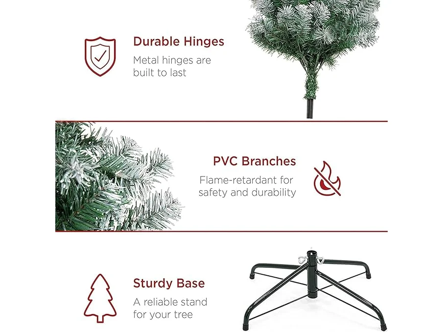 Ongebruikt, volledig, ok, Kunstmatige Kerstboom, 6ft/180cm Sneeuwspray Kerstbomen met 1000 Sneeuwgeklooide Filialen, Dennenappels en Rode Bessen, Metalen Standaard, Xmax Boom voor Thuis, Kantoor, Feestdecoratie, B0B5V2STCS
