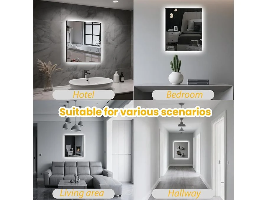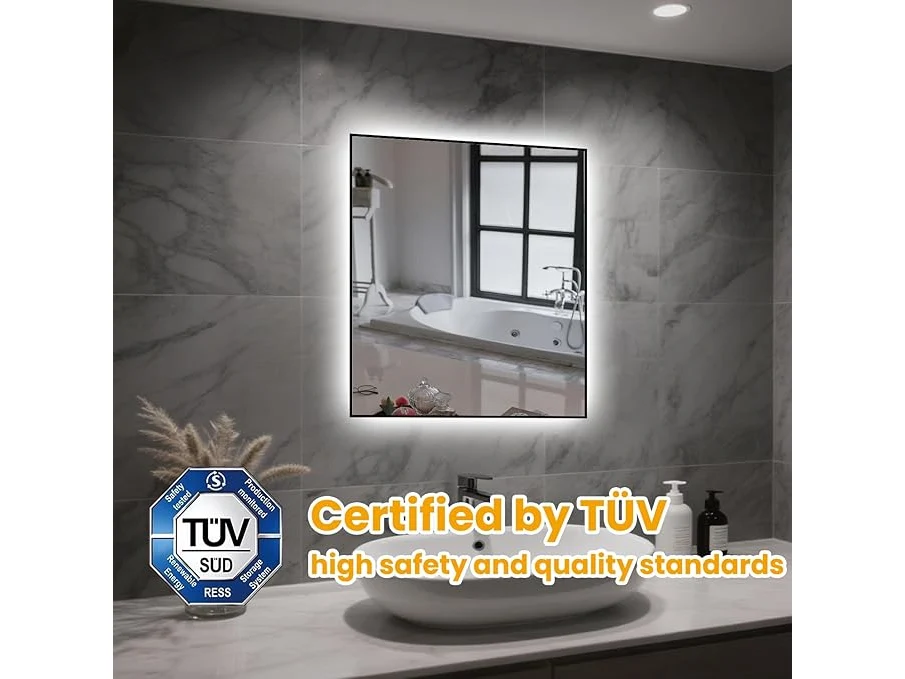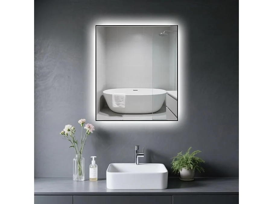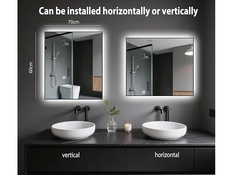 Ongebruikt, getest en werkend, ok, LaapDak Led-badkamerspiegel met verlichting, 60 x 70 cm, wandspiegel voor badkamer, IP54 waterdicht, koudwit, 6500 K, rechthoekig, spaarlichtspiegel,B0DK9F9N58
