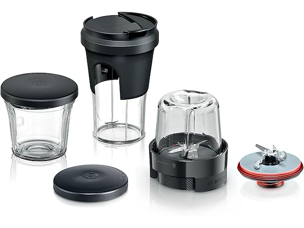 Ongebruikt, glazen potje ontbreekt (zie foto's), Bosch Accessoires MUZS68TM, Multi-hakmolenset, kruiden-/kruidenmolen, universele hakmolen, mixer, opbergoplossing, ToGo-deksel, voor keukenmachine serie 6, serie 8, zwart, B0CV5XBGP3