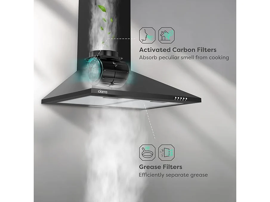 Ongebruikt, getest en werkend, ok, CIARRA CBCB6201 Afzuigkap 60cm zwart aluminium vetfilter wandmontage,Afvoerlucht/circulatielucht afzuigkappen,Onderbouw afzuigkap,LED-verlichting roestvrij staal wandafzuigkap [Energieklasse A], B06XQ7NQGK