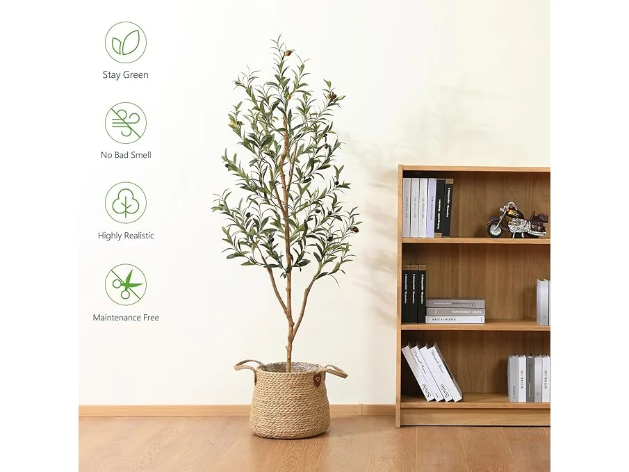 Ongebruikt, ok, Kazeila Kunstolijfboom, 150 cm grote kunstplant voor binnen met fruit, olijfplant van imitatiezijde in pot voor woondecoratie (2 stuks),B0BKRF1RYC