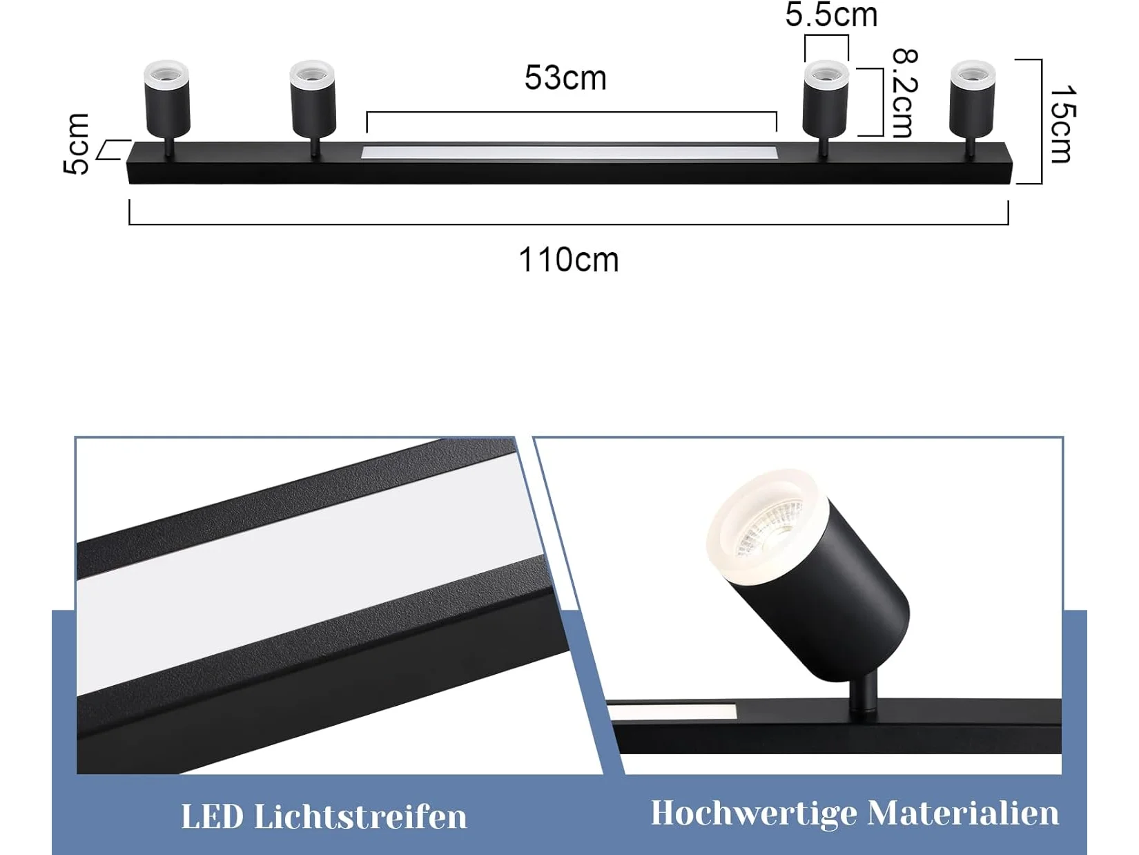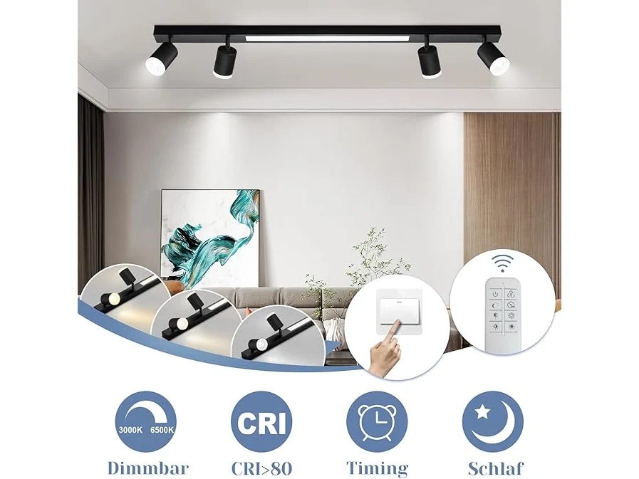 Ongebruikt, getest en werkend, remote ontbreekt, ok, Cupgow LED Plafondlamp Zwart - Plafondlamp 4 Vlammen Dimbaar 3000K-6500K met Afstandsbediening 38W Plafondspots Draaibaar 350° Modern voor Woonkamer Slaapkamer Keuken Kantoor,B0D3XNMRVP