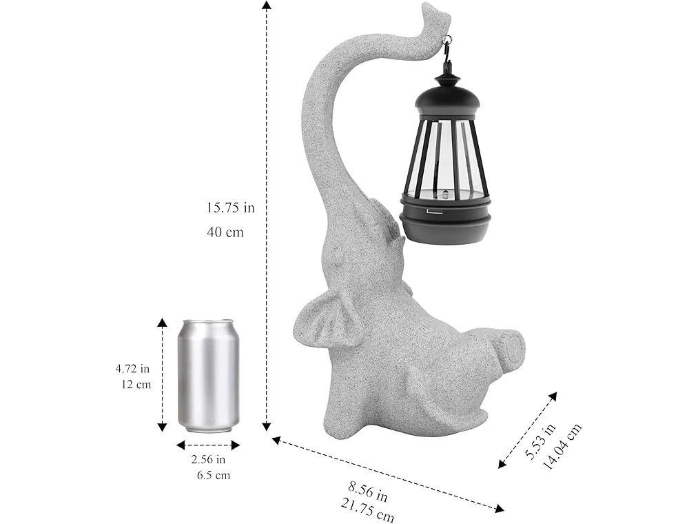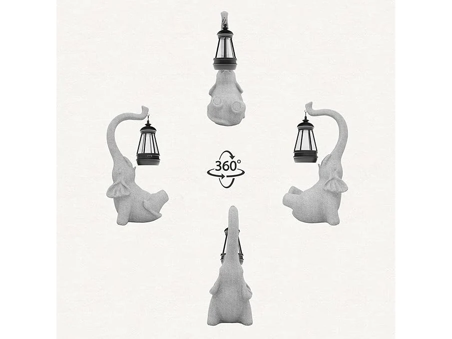 Ongeopend, mikilov Hars Beeld Olifant met Lantaarn op zonne-energie (back L 25cm decoratie olifant grijs, B0DQNCHZ9K